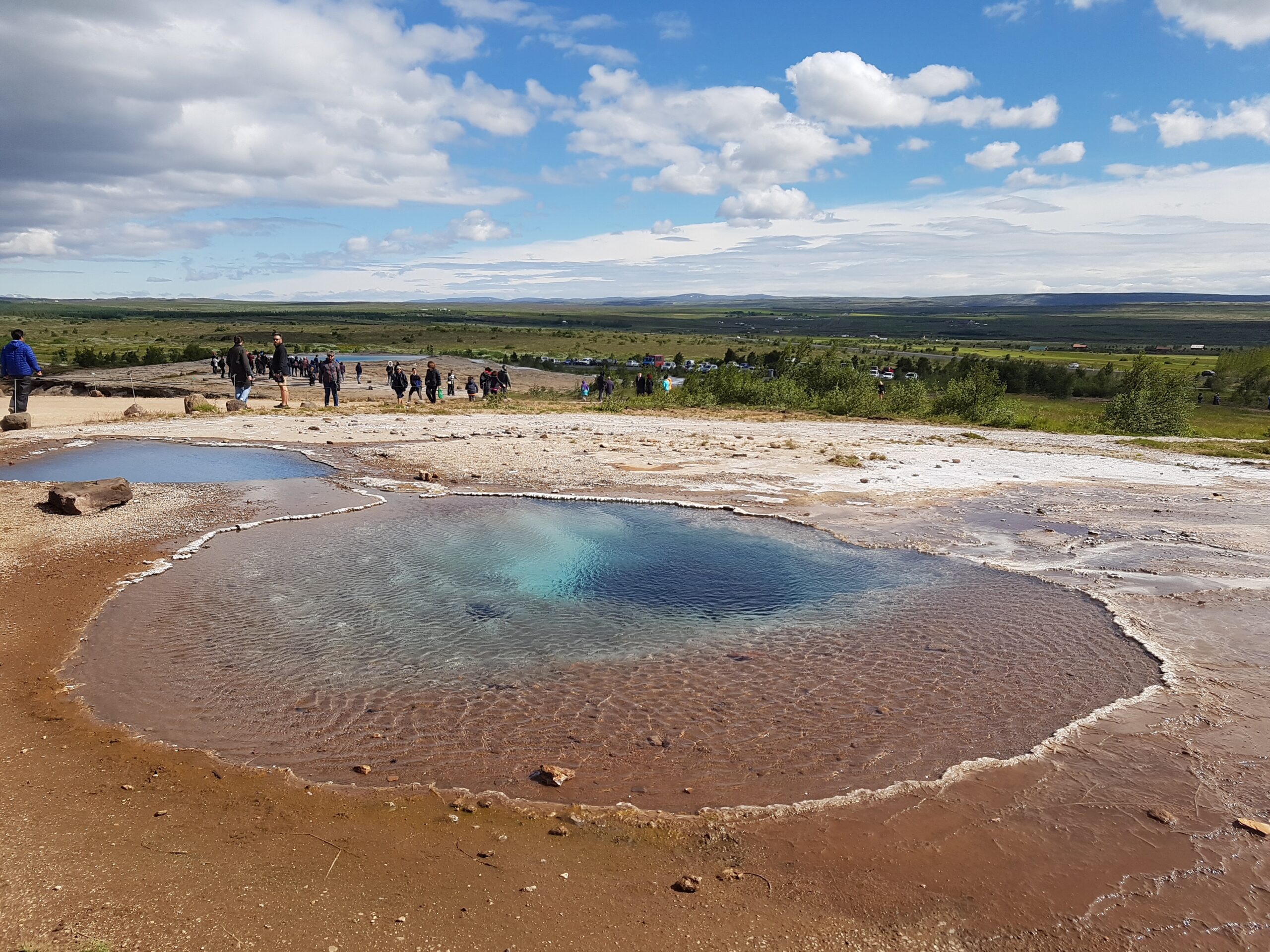 豪卡达鲁尔山谷( Haukadalur Geothermal Area) 的间歇泉位于活跃的地热区。由于地下水渗入地底,进入被岩浆加热的地热通道,水温升高时导致水压增加,当水达到峰值温度和压力时,蒸汽冲破地表,将水柱喷射到空中,形成间歇泉喷发。简单来说,间歇泉就像一个“天然高压锅”,加热到极限后,压力突然释放,形成喷发!喷泉的水温相当高,出于安全原因,建议游客与温泉保持安全距离,从远处观看间歇泉绝对是最佳选择。