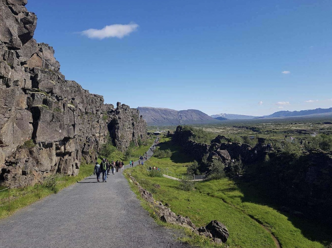辛格维利尔位于 大西洋中脊 之上,是地球上少数可以看到板块分裂的地方。在这里,欧亚板块与北美板块 以每年约 2厘米 的速度分离,形成壮观的裂谷,如 阿尔曼纳峡谷(Almannagjá),可以直观地看到大陆漂移的地质现象。
